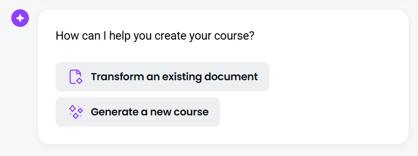 Select the options that fit your team. These guide the AI so your course is shaped around your audience’s needs and built with clearer structure, better flow, and stronger learning design from the start.