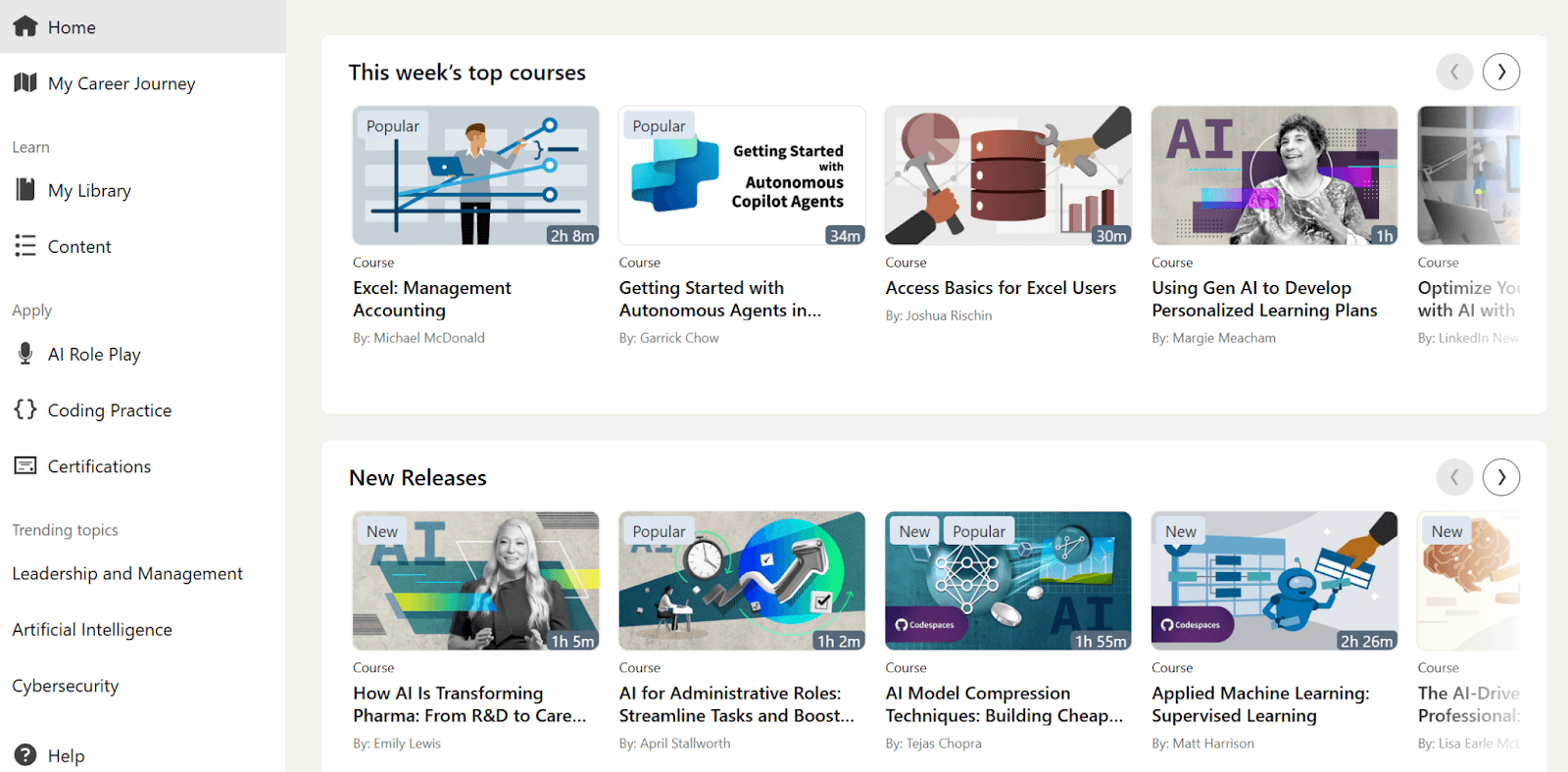 For example, Microsoft Viva Learning delivers training directly inside Microsoft Teams. Employees can search for courses, view personalized learning recommendations, and complete modules without leaving their chat or meeting environment. This approach supports continuous learning while keeping the workflow intact.