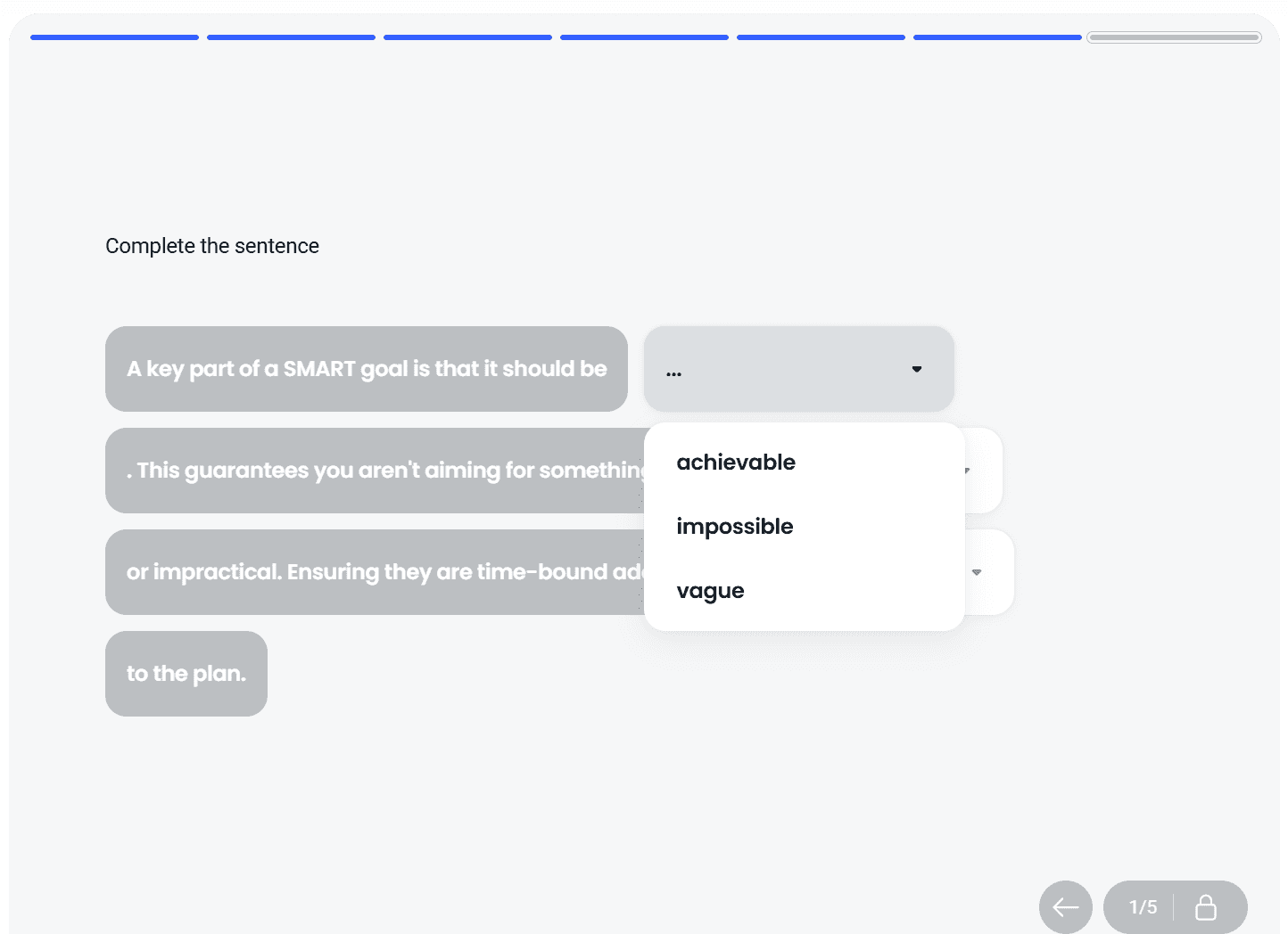 - Interactive elements - Learning sticks when it’s engaging. Choose a course creation tool that makes it simple to add interactive elements like videos, quizzes, and infographics to keep learners active. Platforms like Coassemble make it simple to build interactive content that boosts knowledge retention.