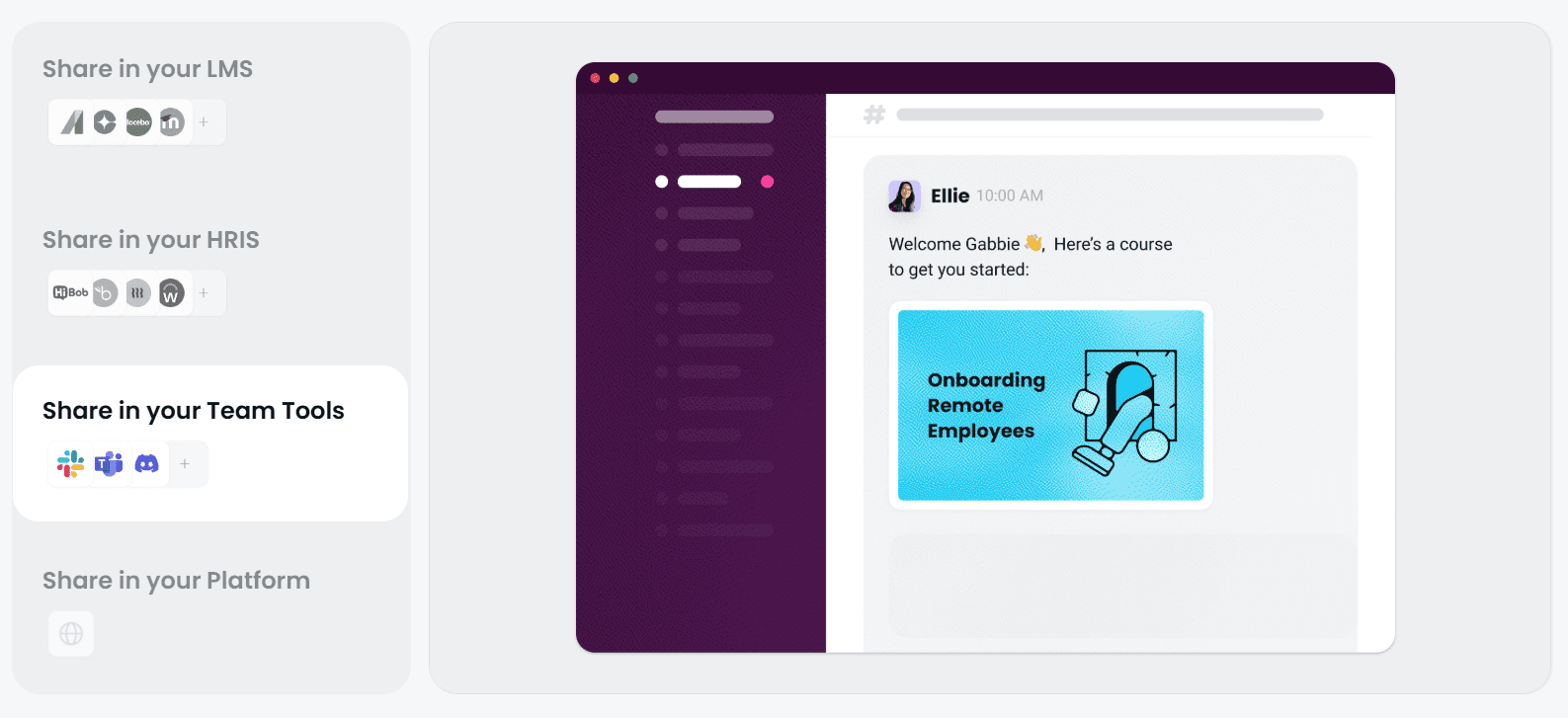 Structured workplace learning programs benefit from short, focused modules that teams can complete alongside real tasks. Content should be easy to access, mobile-friendly, and shared through tools people already use, like Slack.