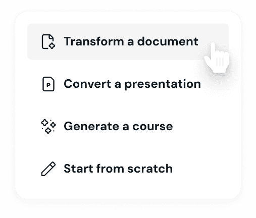 Definitely. Got presentations that need a fresh spin or documents that weren’t exactly made with learning best practices? No worries. Simply upload your slides, Word files, or PDFs, and watch Coassemble help you transform them into engaging, interactive courses that grab your team’s attention. Plus, if you’ve got videos hosted elsewhere, you can easily bring those right into your courses too—no need to start from zero, just build on what you already have!